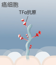 但是正常细胞若变为癌细胞,此部位则出现结构变化,TFα抗原将暴露于表面。