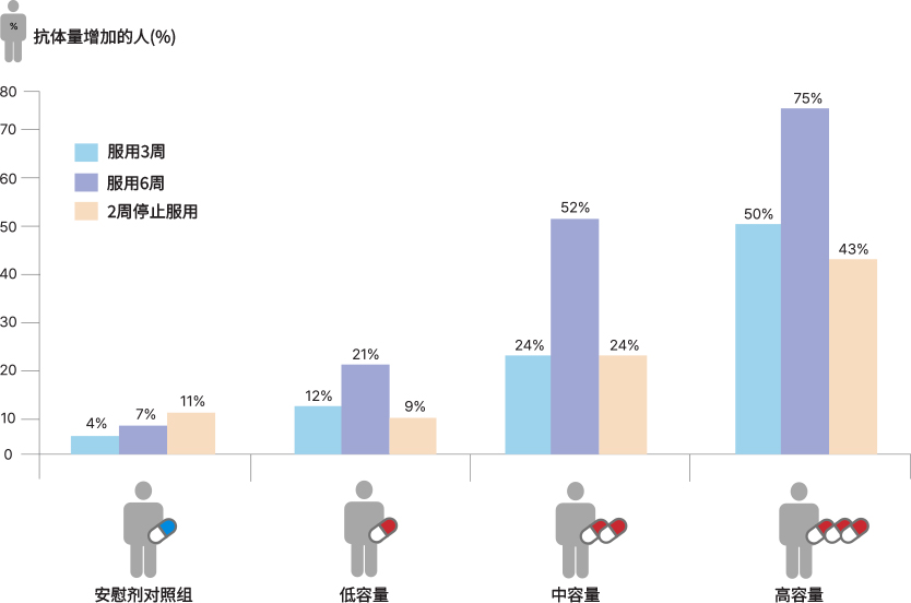 - 以140名健康成年人为对象投入CorriX 6周时确认到TFα IgM抗体增加,停止服用2周时TFα IgM抗体减少。