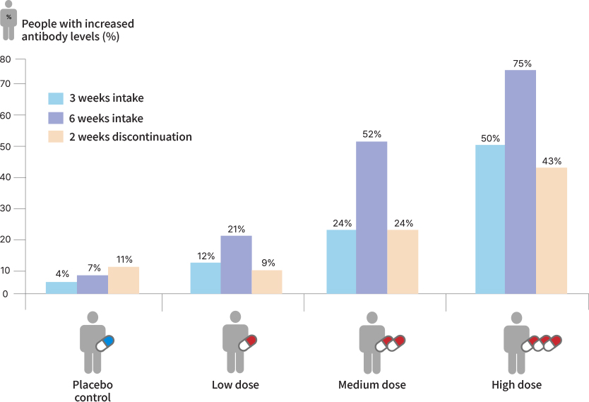 - A study involving 140 healthy adults confirmed that TFα IgM antibody levels increased after 6 weeks of CorriX consumption. However, it was also observed that TFα IgM antibody levels decreased after a 2-week discontinuation of consumption.